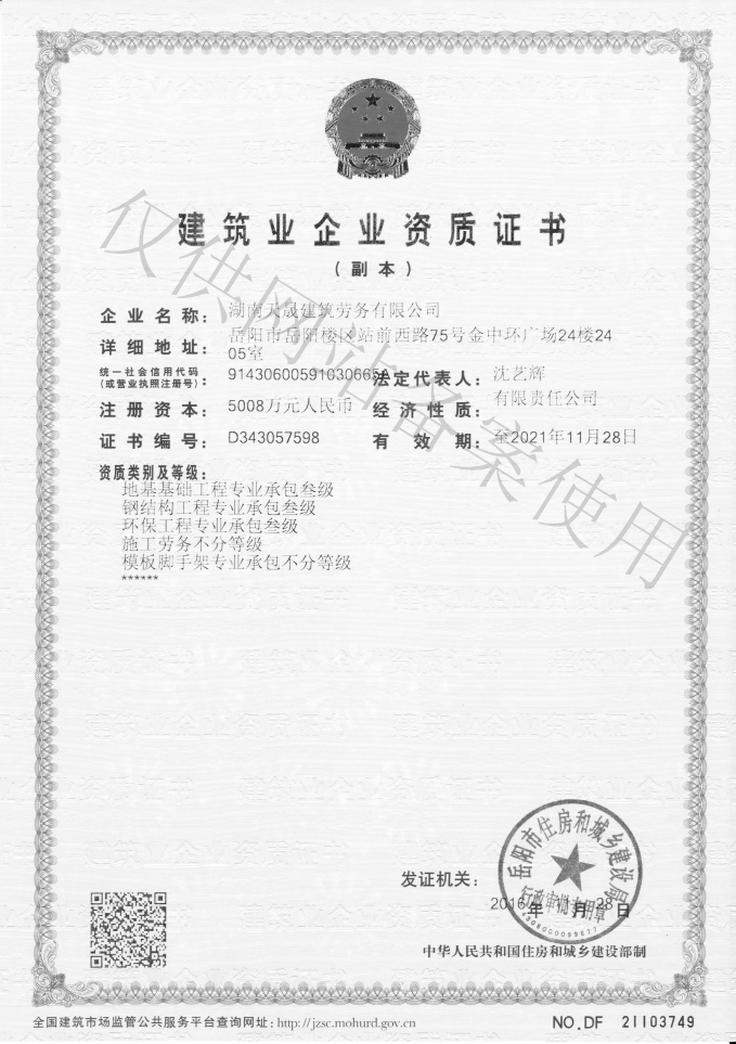 公司2018年新增環(huán)保工程專業(yè)承包三級資質(zhì)